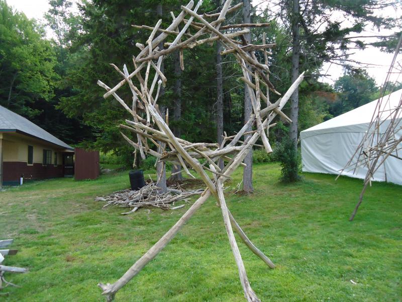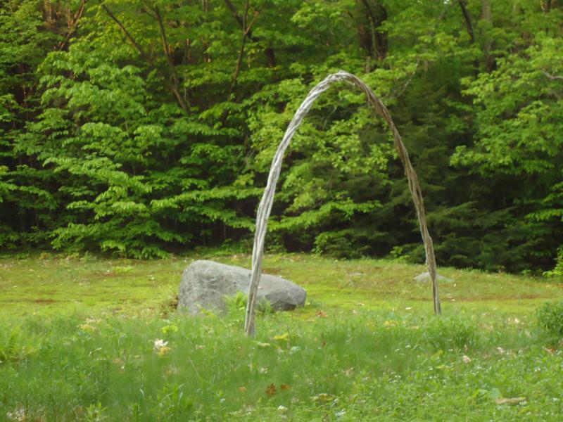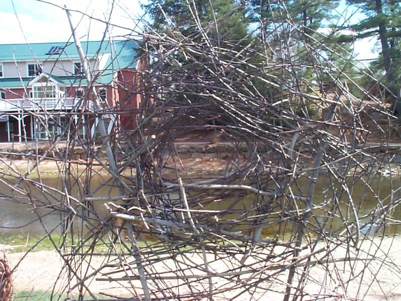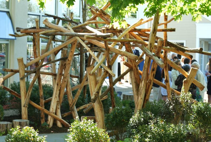 This work is really just a re-arrangement of wood as it is found naturally. Young flexible saplings applied like pencil lines on the landscape. Old driftwood given new form. The material itself carries with it the spirit of the forest, a warm sheltering spirit.