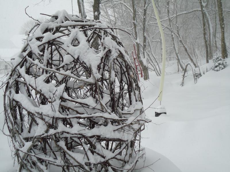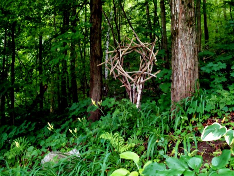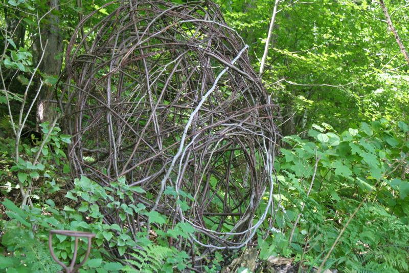 More often than not I build structures like these on site. Planted in the ground. As much as I want each piece to be appreciated, the attention it draws to the larger landscape is what I hope for. Topography and the architecture of landscape, the colors of things, shadows, and the quality of light, the trees and the spaces between the trees provide complete and perfect canvases. I try to add only a touch or two without taking anything away.woven branches