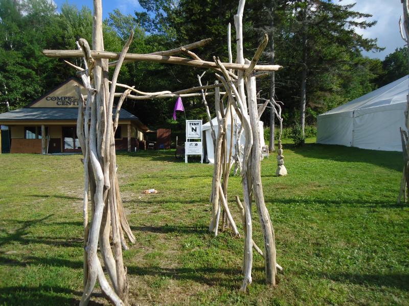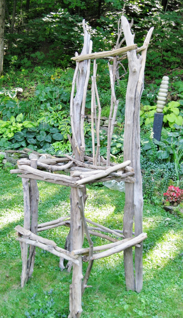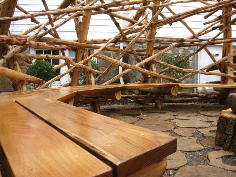 Outdoor work made with these materials will decay over time. Saplings can be expected last 2 or 3 years, driftwood will last much longer in most cases. Logs and wood that can be treated with a finish, still longer. Some are only intended to last the duration of a wedding or festival and then quietly disappear.